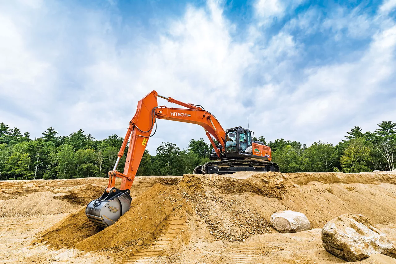 The Milford-based company is engaged in various businesses, but over the past five years, it has focused particularly on the construction materials business, on materials such as sand, gravel, stone and concrete aggregate. It runs five sand and gravel pits in New Hampshire, one of which has Hitachi Construction Machinery equipment in operation: a ZW370 wheel loader and a ZX350 hydraulic excavator.